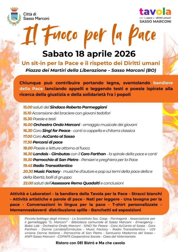 Vi aspettiamo sabato 18 aprile, alle ore 15, presso Piazza dei Martiri della Liberazione a Sasso Marconi per un pomeriggio all’insegna della Pace!