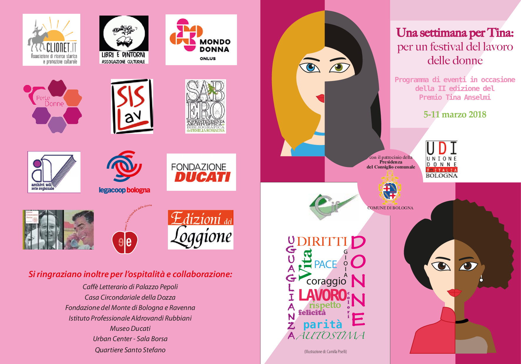 Palazzo Baraccano Via Santo Stefano 119, Bologna, ItaliaLa mostra ospita le opere grafiche degli studenti e delle studentesse delle classi quinte A,B,C dell'Istituto Professionale Aldrovandi Rubbiani realizzate al fine di elaborare la copertina per la nuova brouchure dell'UDI, Unione Donne in Italia di Bologna, mettendo in risalto il lavoro che l'associazione svolge dal 1945.