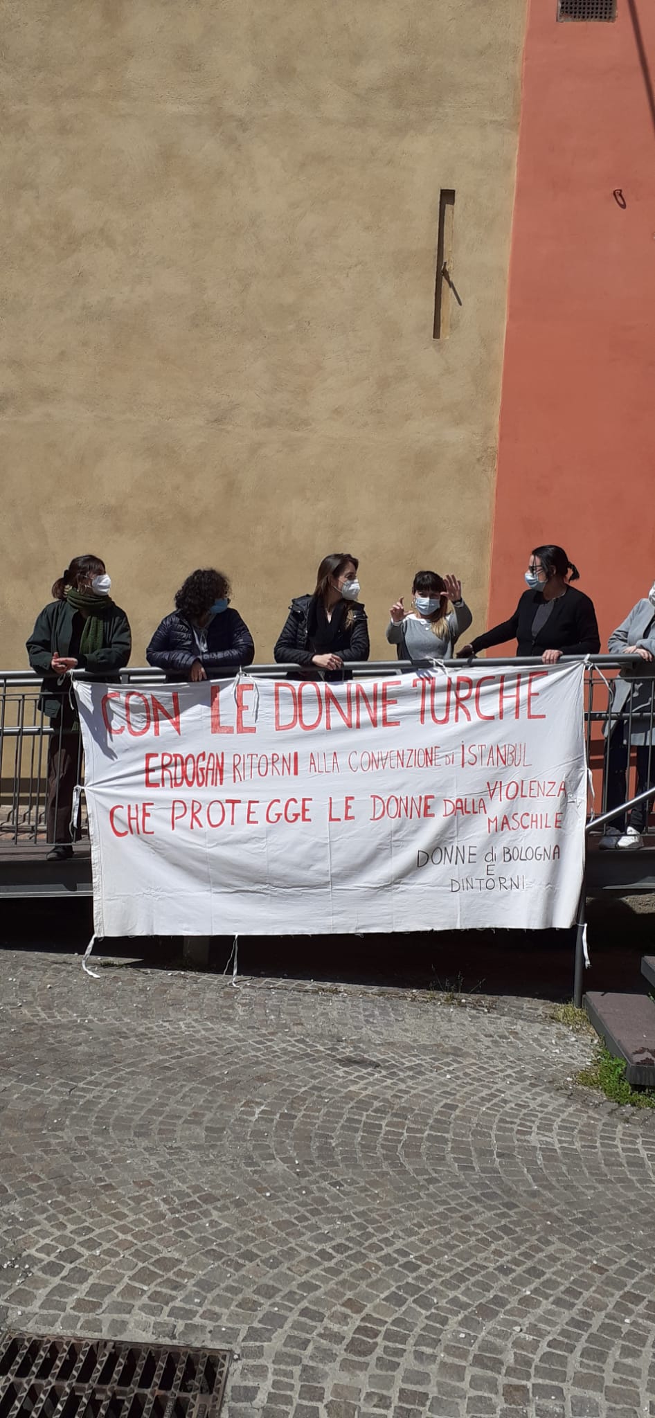 In questo momento è necessario un impegno politico delle istituzioni nazionali ed EU per un contrasto reale alla violenza contro le donne ed una linea che condanni i paesi che ne minimizzano o occultano la portata. I diritti delle donne sono Diritti Umani. Siamo grate al Comune di Bologna che ha deciso di partecipare a questo nostro appello attraverso uno striscione che sarà appeso su Palazzo D’Accursio.