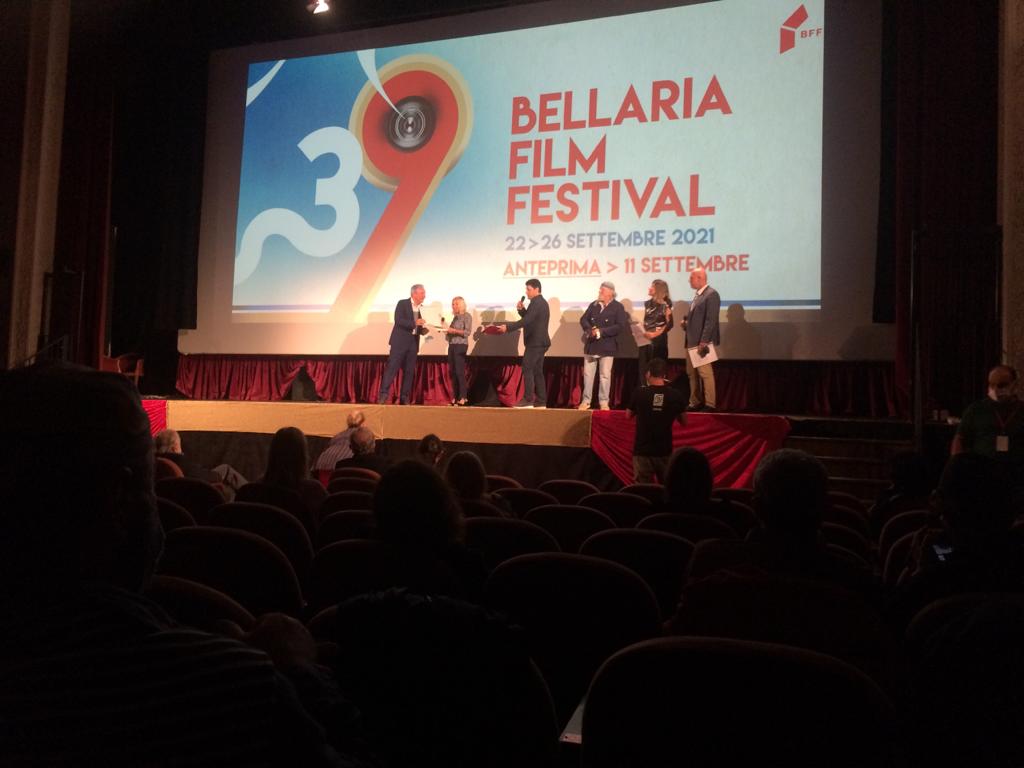 Dal 22 al 26 settembre si è svolto Il Bellaria Film Festival in cui una Giuria di esperti di Cinema, Teatro e Arti, presieduta dal noto attore Moni Ovadia, su trecento documentari ha selezionato il nostro docufilm DETENUTE FUORI DALL’OMBRA. Questa 39esima edizione, che aveva l’art. 9 della Costituzione come tema conduttore, prevedeva i seguenti Premi: BEI Doc, BEI Young Doc, Luis Bacalov, Pari Opportunità, Menzioni speciali. Cinque giorni di proiezioni molto interessanti e coinvolgenti, fra le quali il nostro lavoro è risultato molto apprezzato dal Direttore Marcello Corvino e da Moni Ovadia. L’amica e regista Licia Ugo, Giuseppina Martelli ed Alba Piolanti, insieme alle amiche di UDI Cesenatico, hanno assistito alla proiezione in programma il giorno 23, già molto orgogliose dei complimenti ricevuti. Finché… non siamo giunte al termine. La sera del 26 settembre infatti, nell’accogliente sala del Teatro Astra di Bellaria, a conclusione del 39esimo Bellaria Film Festival, è stato assegnato un bel premio, quello chiamato “Pari Opportunità” al nostro documentario DETENUTE FUORI DALL’OMBRA: “un premio dedicato ai docufilm che pongono l’accento su tematiche sociali come la specificità di genere e le abilità differenti”. Alla presenza di un numeroso pubblico fra cui il regista Pupi Avati e l’attore Silvio Orlando, il Premio è stato ritirato dalla regista Licia Ugo con una motivazione che ha riconosciuto il dolore e la forza delle detenute che si sono esposte, l’impegno e il lavoro di volontariato e lo spirito di solidarietà con cui è stato realizzato. Un premio che ci riempie di gioia, di orgoglio e senso di appartenenza.
