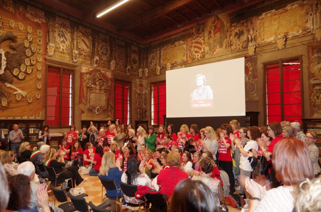 L’ottava edizione del Premio Tina Anselmi si è conclusa oggi 14 maggio nella prestigiosa Sala Stabat Mater dell’Archiginnasio di Bologna, con una cerimonia emozionante e partecipatissima che è stata conclusa da un formidabile coro, improvvisato dalle lavoratrici de La Perla sulle note del canto di lotta femminile “Sebben che siamo donne paura non abbiamo” al quale si è unita tutta la platea.