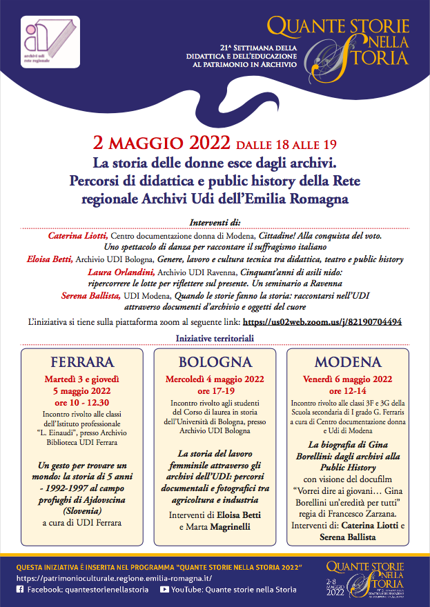 Anche nel 2022 gli Archivi Storici Udi partecipano al ciclo di eventi in occasione di Quante Storie nella Storia.