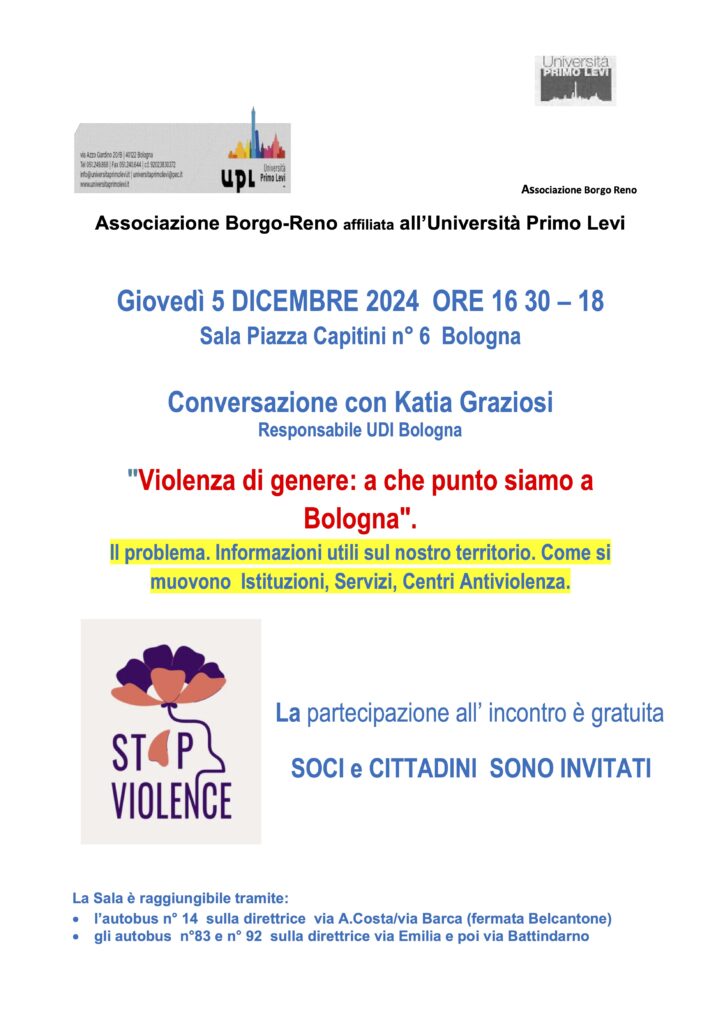 In occasione della Festa de l’Unità l’Avv. del Gruppo Giustizia Udi di Bologna Marta Tricarico dialogherà con Roberta Mori, Loretta Michelini, Elsa Antonioni, Gianna Nuvolari, Francesca Puglisi, Giulia Bernagozzi e Enrico di Stasi sulle “Strategie di contrasto alla violenza di genere”. Conduce Alice Taruffi.
