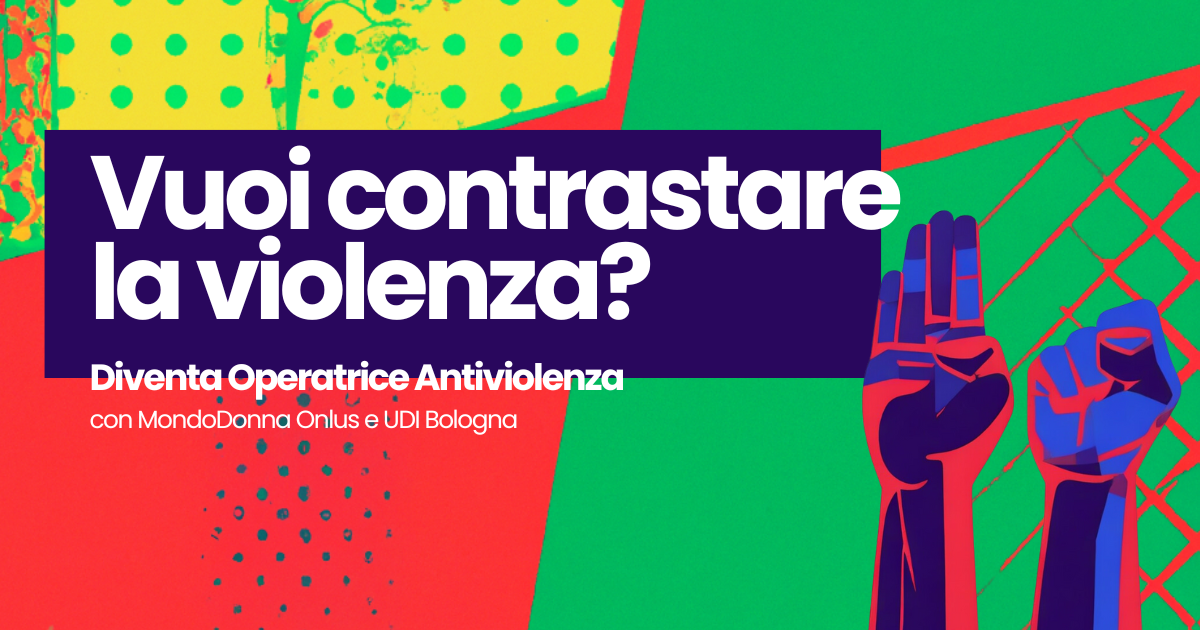 Udi Bologna e MondoDonna Onlus organizzano un Corso per operatrici antiviolenza. Il corso prevede 10 incontri, per 120 ore di formazione (60 di teoria e 60 esperienziali) tra l’11 ottobre e il 14 dicembre 2024.