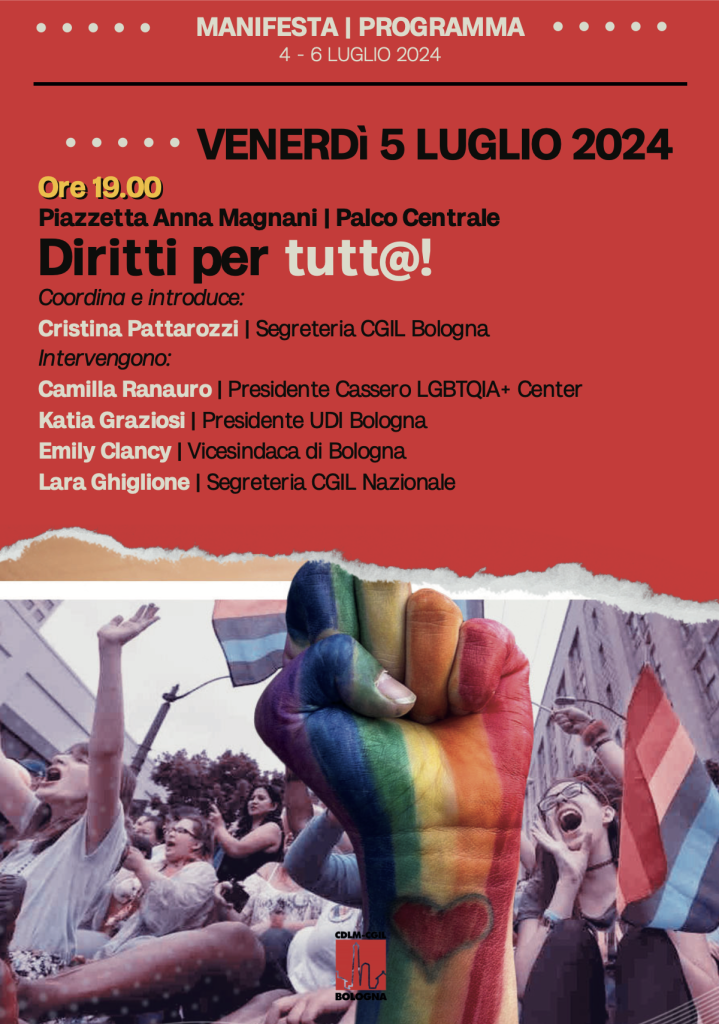 Vi aspettiamo il 5 luglio, alle ore 19, presso il Palco centrale della Piazzetta Anna Magnani (Bologna).