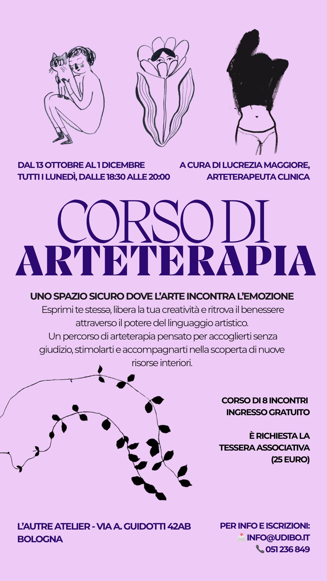 Vi aspettiamo dal 13 ottobre, presso l’Autre Atelier (via Guidotti 42AB, Bologna) per un ciclo di 8 incontri dedicati alla libera espressione di sé attraverso il linguaggio artistico.