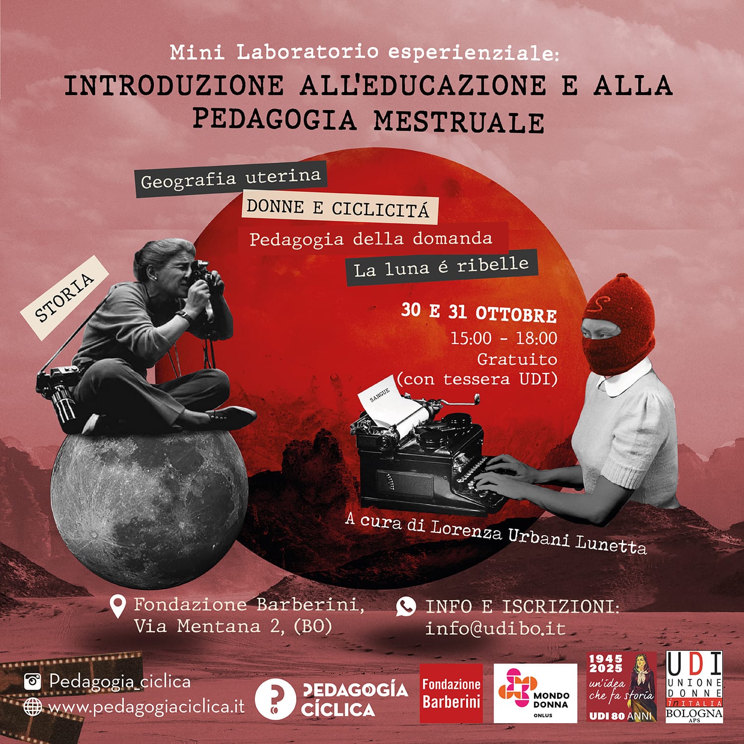 Vi aspettiamo il 30 e 31 ottobre, presso la Fondazione Barberini (via Mentana 2, Bologna), per un mini laboratorio di introduzione all’educazione e alla pedagogia mestruale.