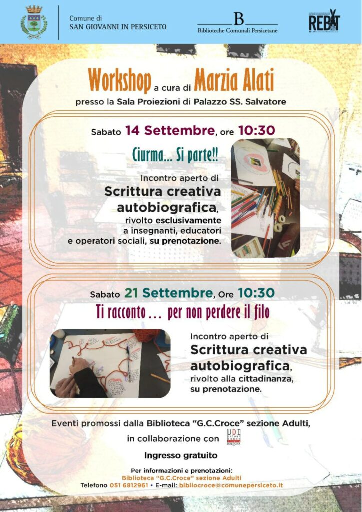 (San Giovanni in Persiceto) per 2 Workshop di Scrittura creativa autobiografica a cura di Marzia Alati, su prenotazione.
