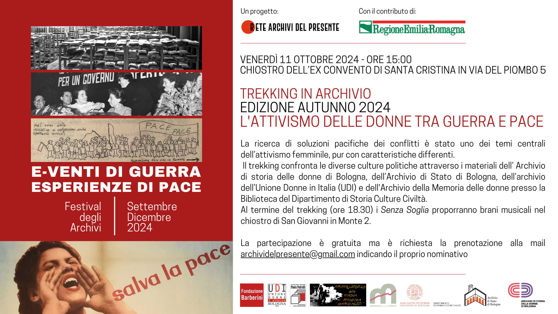 L’incontro è gratuito ma è richiesta la prenotazione a archividelpresente@gmail.com.